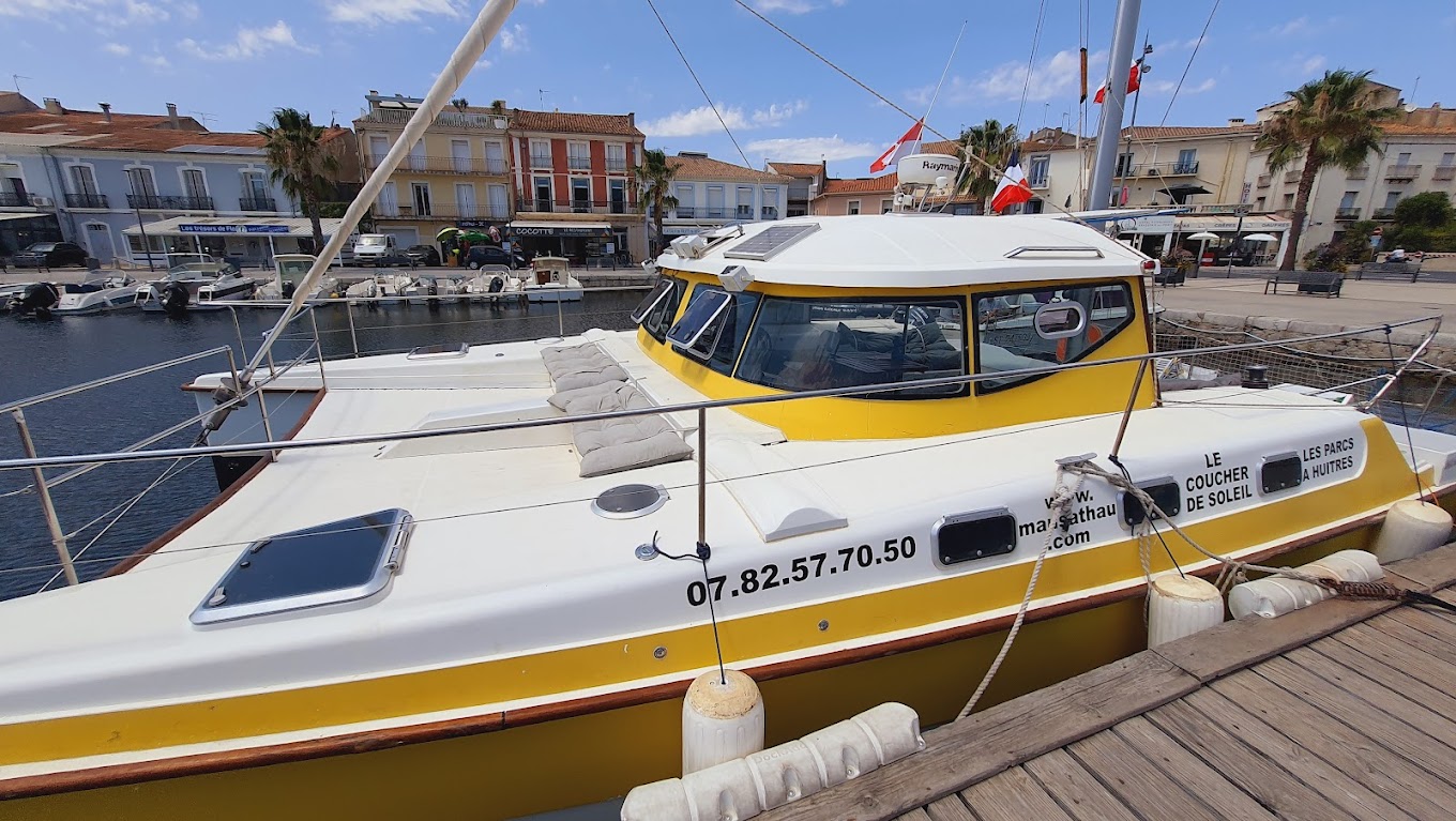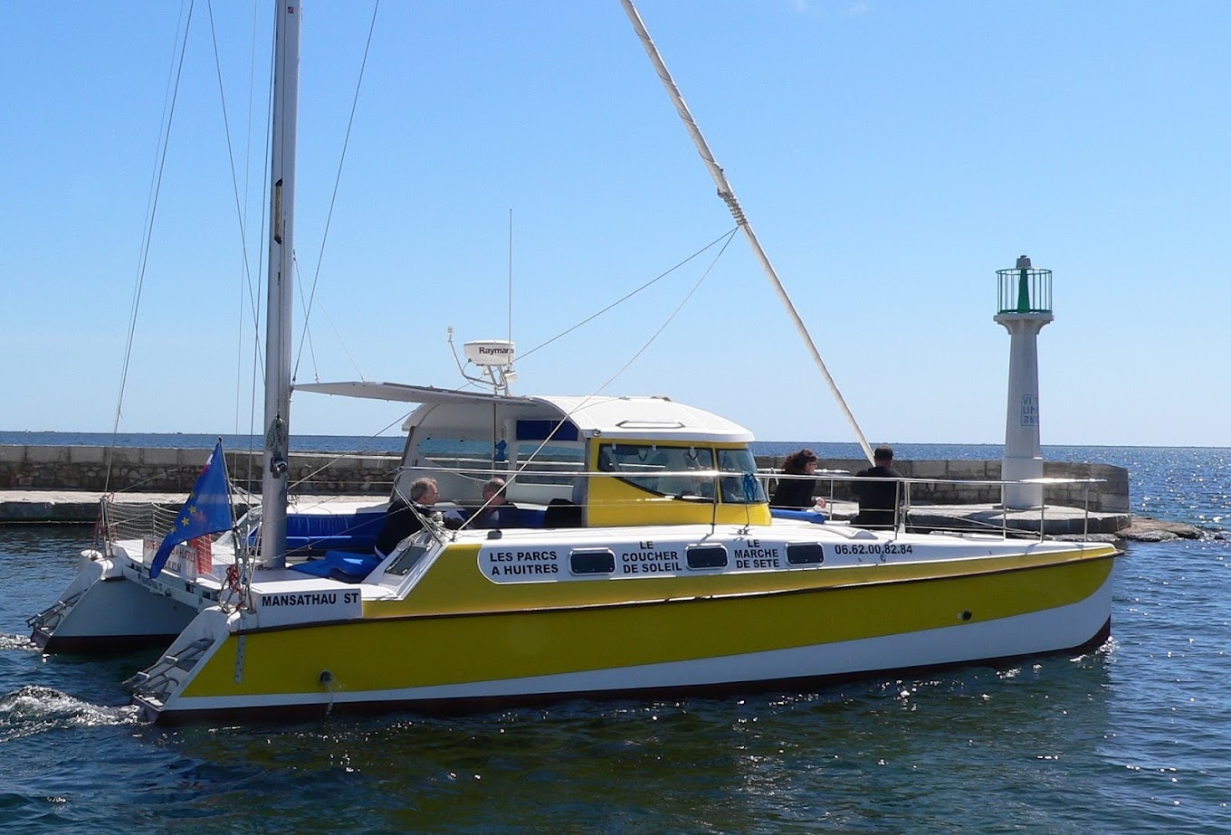 MANSATHAU est un catamaran de promenade à propulsion mixte moteurs et voile de 20 places amarré dans le port de Mèze, dont le capitaine a pris le parti de faire découvrir l’étang de Thau et sa méthode typique d’élevage du coquillage en mettant l’accent sur la convivialité, la tradition et la découverte.